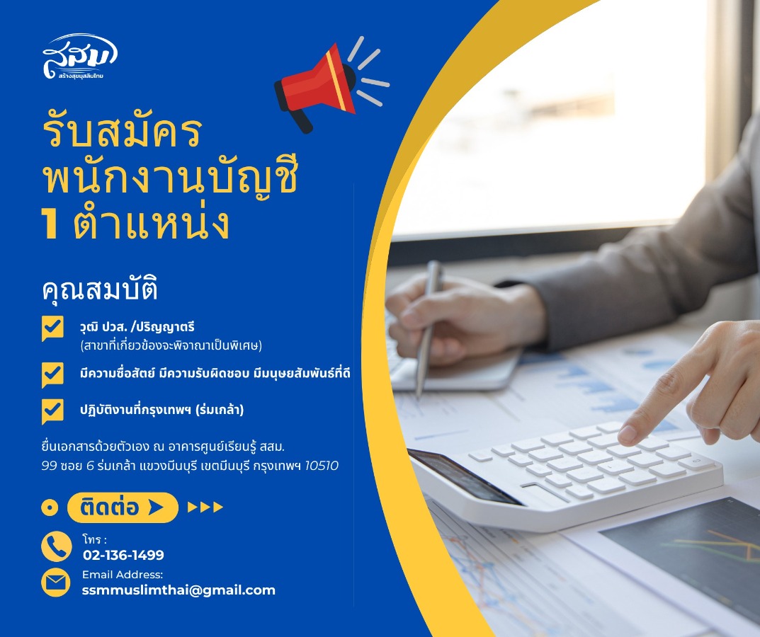 #รับสมัครงาน #งานบัญชี #มูลนิธิสร้างสุขมุสลิมไทย